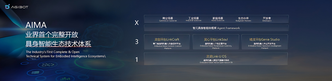 这是一个完整开放的具身智能生态技术体系,采用「1+3+X」架构:统一的开源操作系统「灵渠 Link-U OS」,三大核心开发平台(支持动作学习的灵创平台、侧重智能体定制的灵心平台,以及低门槛一站式开发平台 Genie Studio),在此基础上是数个具身智能体框架。